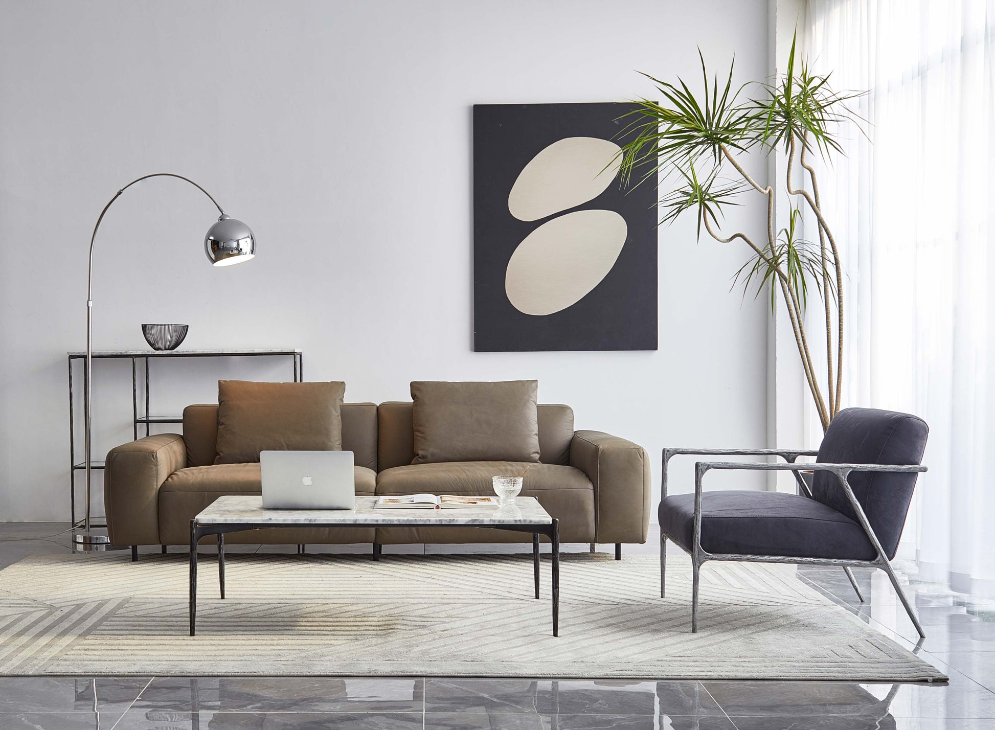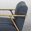 Our chair from the rustic sensibility of a hand-forged metal base with tailored upholstery. Employing an ancient fabrication process, artisans hand hammer the metal bars to reveal an alive, imperfect and organic texture, a counterpoint to the frame's slender, tapered silhouette.