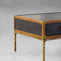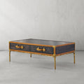 This coffee table has a simple and powerful shape with a dark wooden top, which undoubtedly attracts a lot of attention due to its unique design. With its vintage copper-iron frame and noble leather border, it brings a lot of class to the living room.