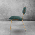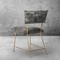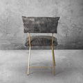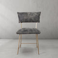 Our chair from the rustic sensibility of a hand-forged metal base with tailored upholstery. Employing an ancient fabrication process, artisans hand hammer the metal bars to reveal an alive, imperfect and organic texture, a counterpoint to the frame's slender, tapered silhouette.