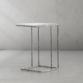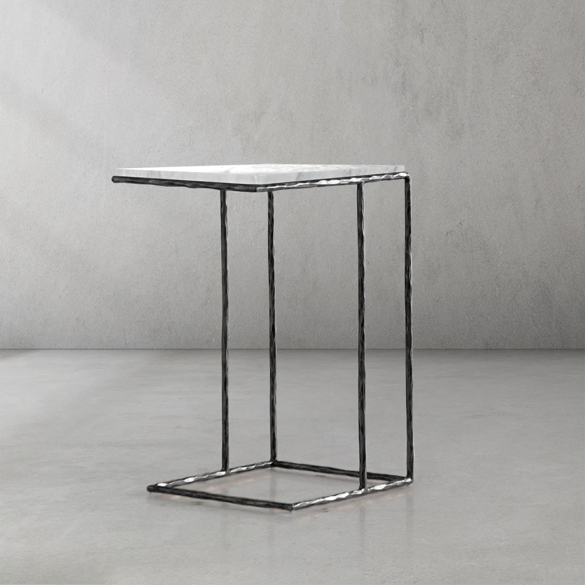 Our collection by the rustic sensibility of hand-forged metal with cool Italian Carrara marble. Employing an ancient fabrication process, artisans hand hammer the metal bars to reveal an alive, imperfect and organic texture. The pounded, tapered silhouettes are a rich counterpoint to the smooth, honed stone.