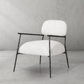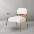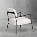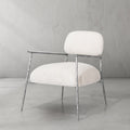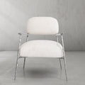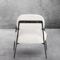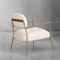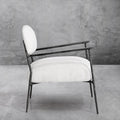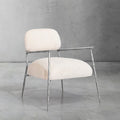 Our chair from the rustic sensibility of a hand-forged metal base with tailored upholstery. Employing an ancient fabrication process, artisans hand hammer the metal bars to reveal an alive, imperfect and organic texture, a counterpoint to the frame's slender, tapered silhouette.