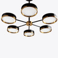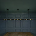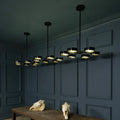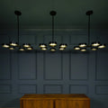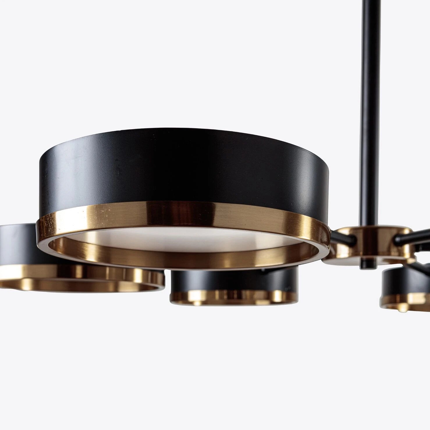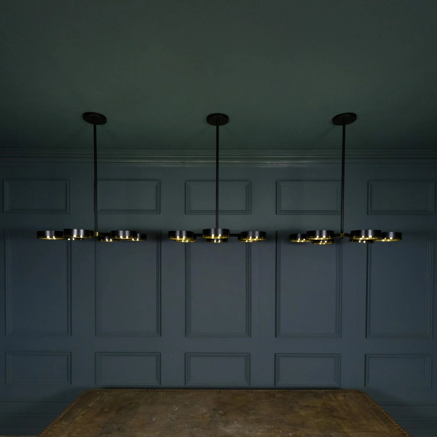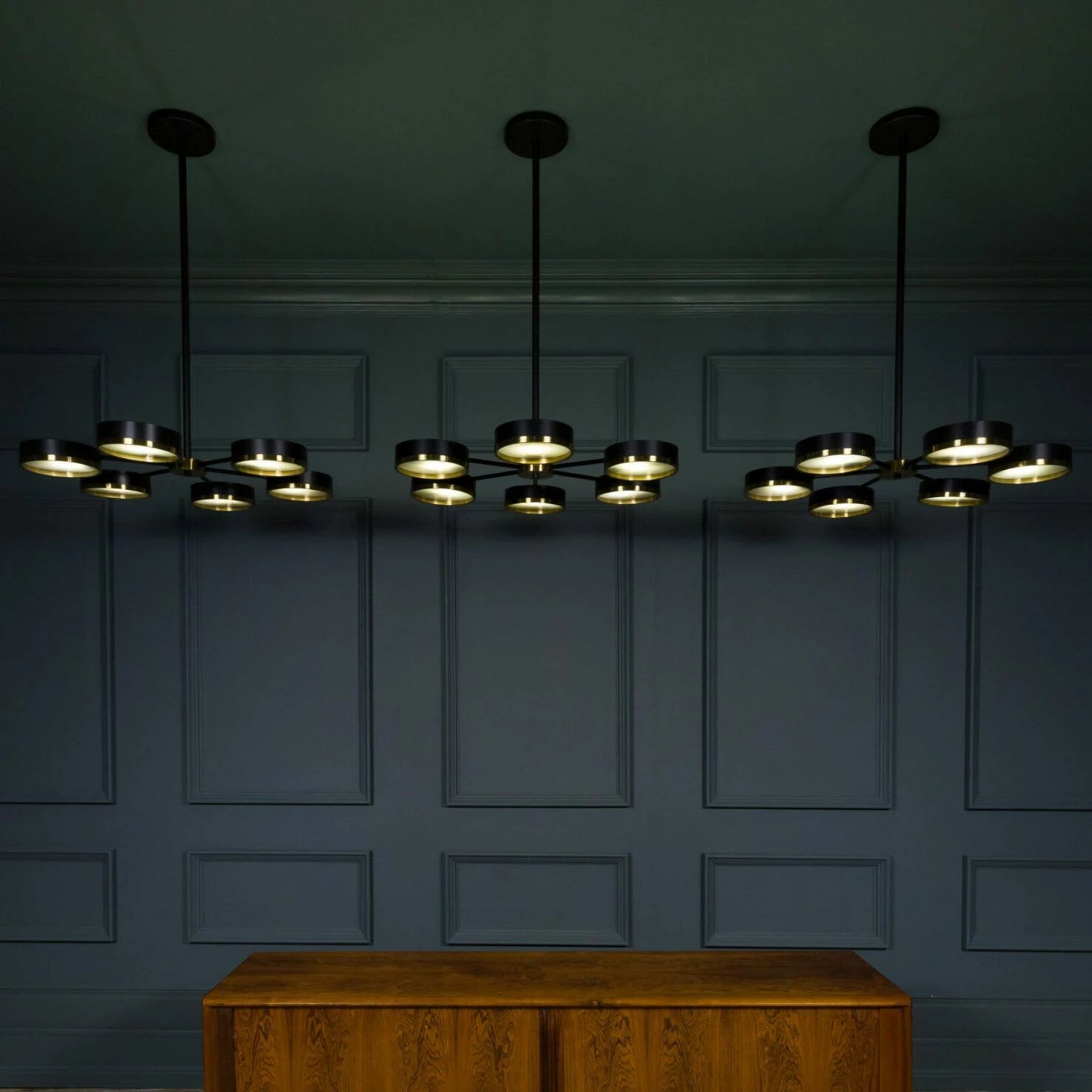 For those wanting an impactful, modernist chandelier, look no further. The Moscow chandelier diffuses light softly through its six frosted glass disks. The disks are rimmed in brass, reaching out diagonally on sleek, black iron spokes. A simple industrial smartness combined with its adjustable length makes it perfect for homes with lower ceiling heights. This powerful contemporary light will look elegant in a bedroom, living room or above a dining table.