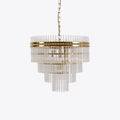 The Waldorf chandelier is available in 3 sizes. The small Waldorf features 4 tiers, the medium features 5 tiers and the largest has 6.