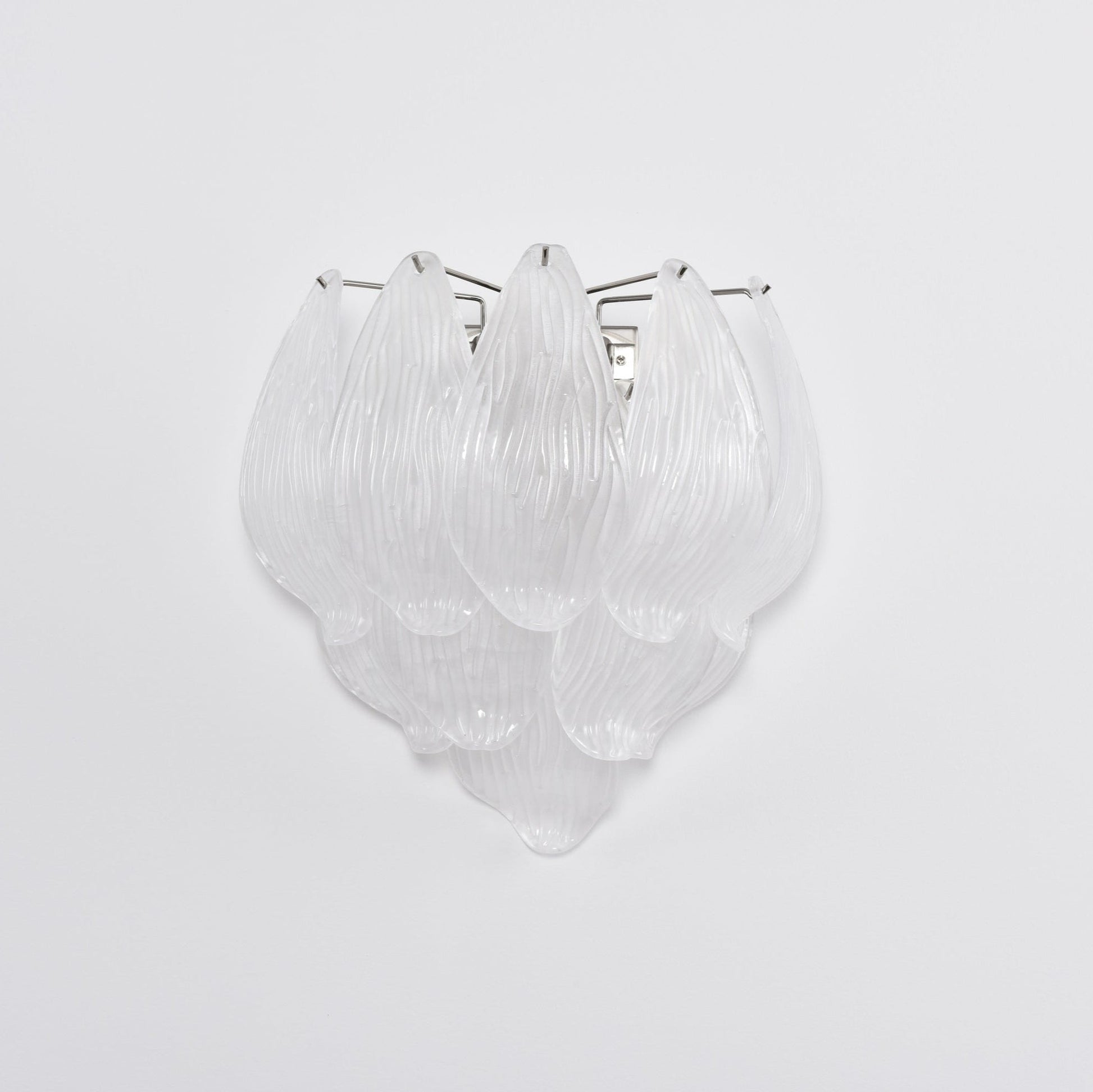 Inspired by the elegance of blooming petals, the Tuliva Murano Wall Lamp features hand-formed Murano glass leaves that cascade in a graceful, organic silhouette. With frosted textures and soft light diffusion, this piece elevates any space with artistic sophistication and timeless charm.