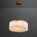 The Velaria Chandelier exudes refined grandeur through cascading alabaster panels, each delicately suspended from a dual-tiered brass frame. Its sculptural silhouette is inspired by classical drapery and celestial harmony, casting a soft, diffused glow reminiscent of moonlight behind silk. Hand-polished and precision-set, this piece brings architectural elegance and timeless luxury to contemporary interiors.