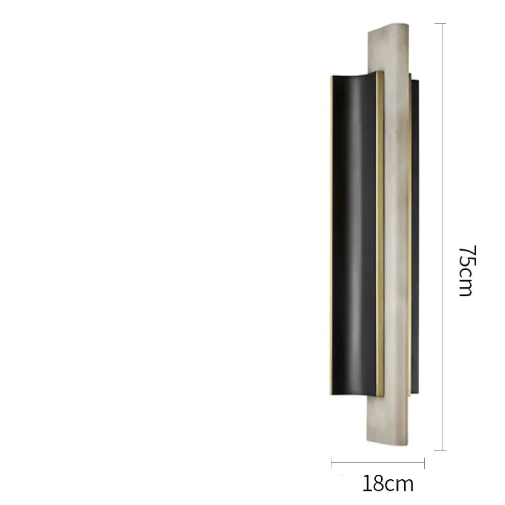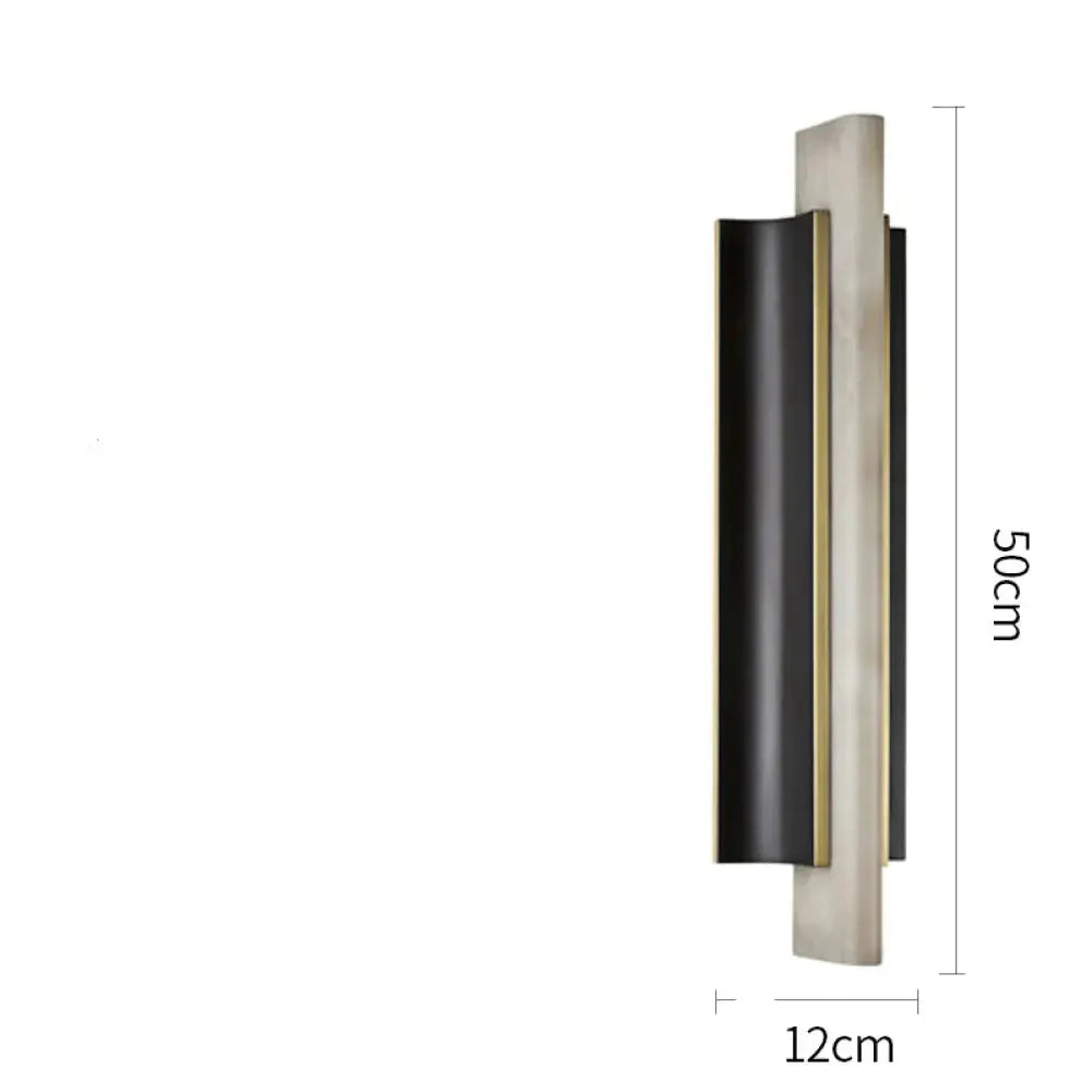 A sleek modern wall sconce featuring alabaster, black metal, and brass accents. Designed for hallways, bedrooms, and contemporary interiors, this sculptural fixture emits a soft, ambient glow. A statement piece perfect for luxury homes, boutique hotels, and refined design spaces.