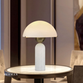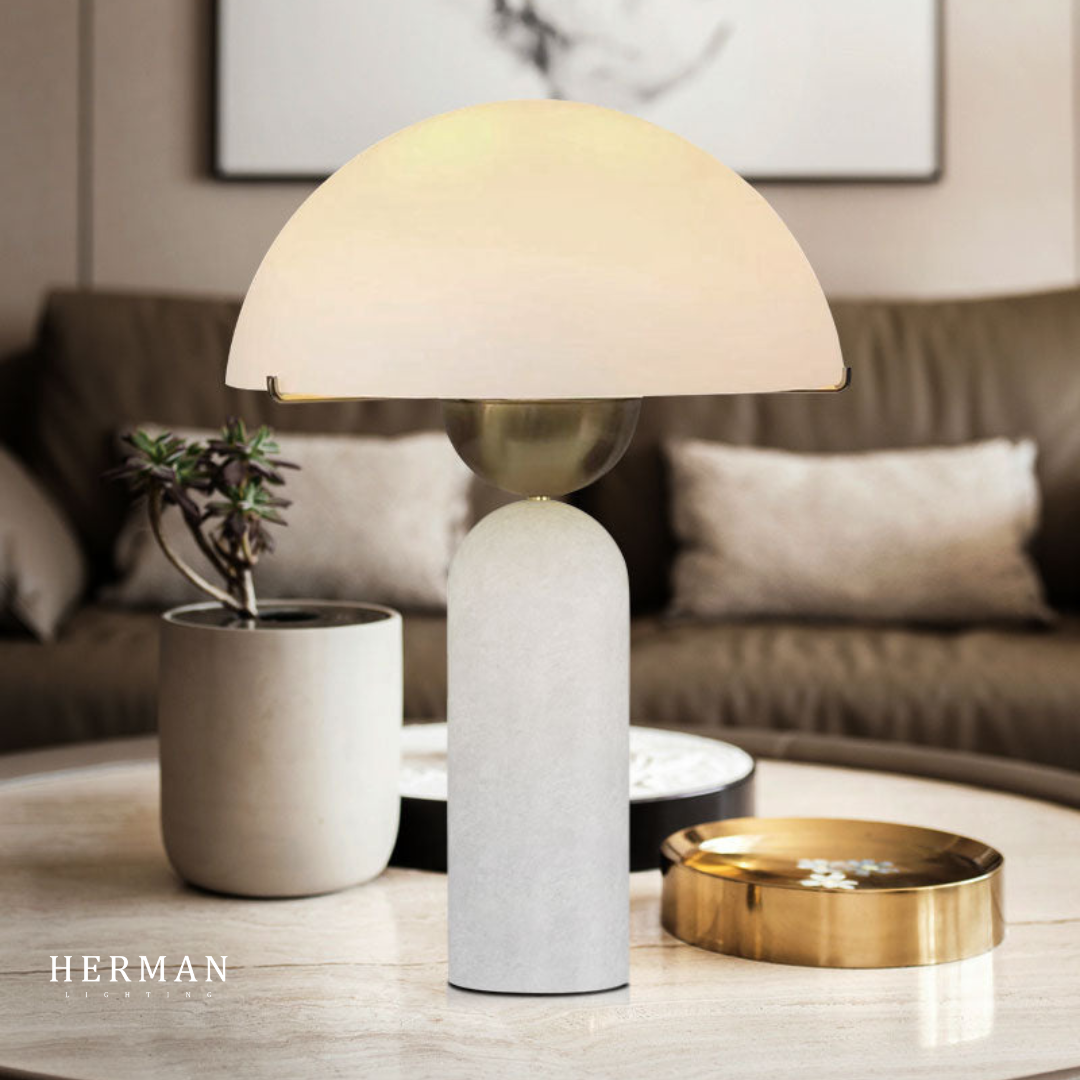 Illuminate your space with the sleek and elegant G9 Alabaster white marble table lamp.With 15W of power, it provides just the right amount of light for reading or creating a cozy ambiance.The 12" diameter makes it a perfect fit for any room, adding a touch of sophistication and style.